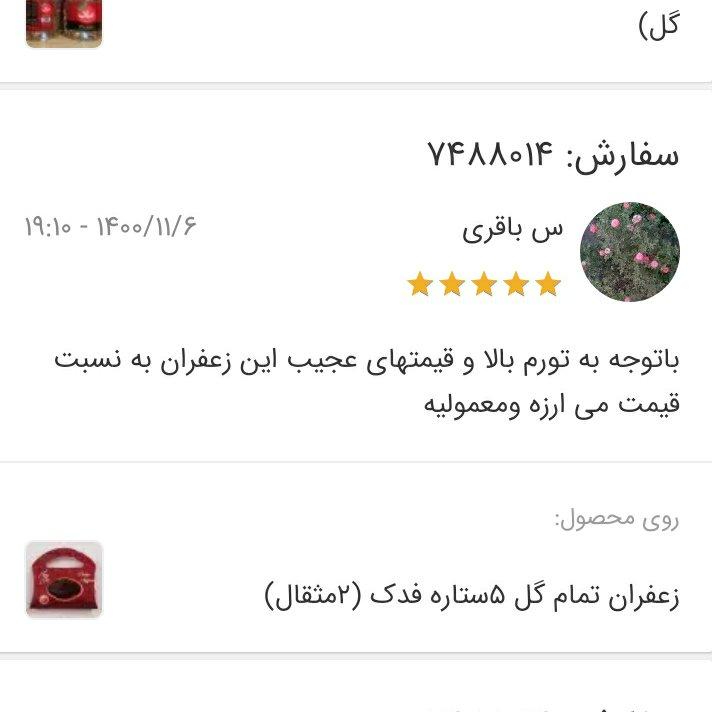 زعفران تمام گل 5ستاره فدک (2مثقال)