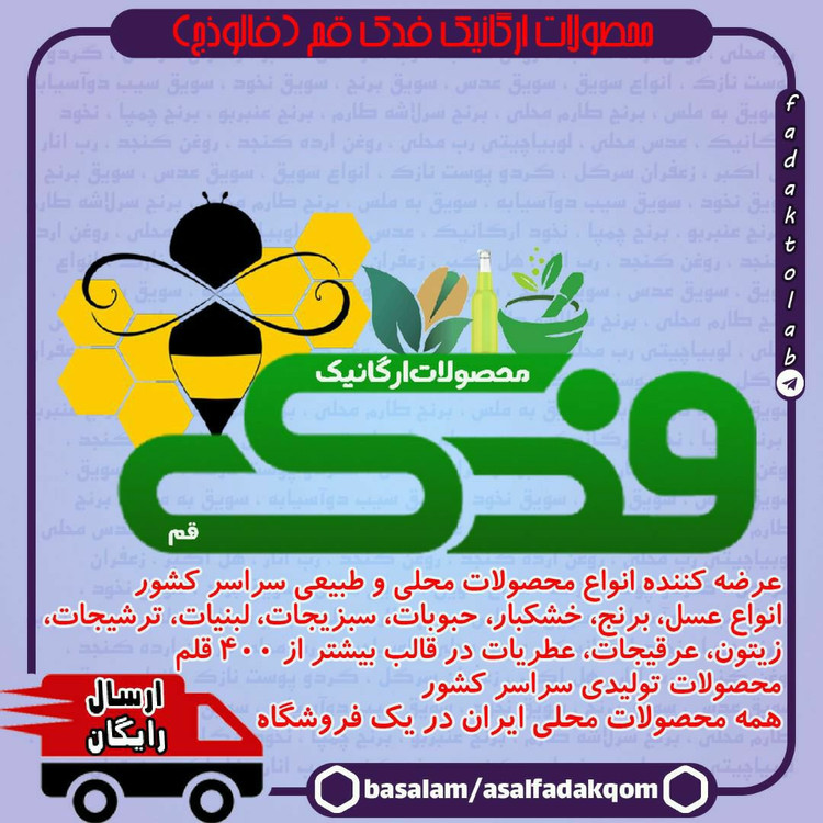 پخت سنتی محصولات خوراکی و نوشیدنی فدک، محصولاتی سالم و گیاهی هستند. فاقد مواد نگهدارنده و افزودنی های شیمیایی بوده و بر طبق اصول بهداشتی تهیه شده اند. عرضه بصورت عمده و جزئی با قیمت مناسب وجود دارد. سلامتی و رضایت شما برای ما مهم است.