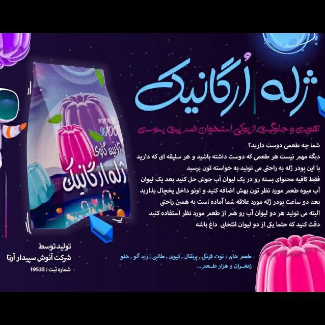 پودر ژله ارگانیک ممتاز سپیدار فدک (با شکر سرخ و هزارطعم)