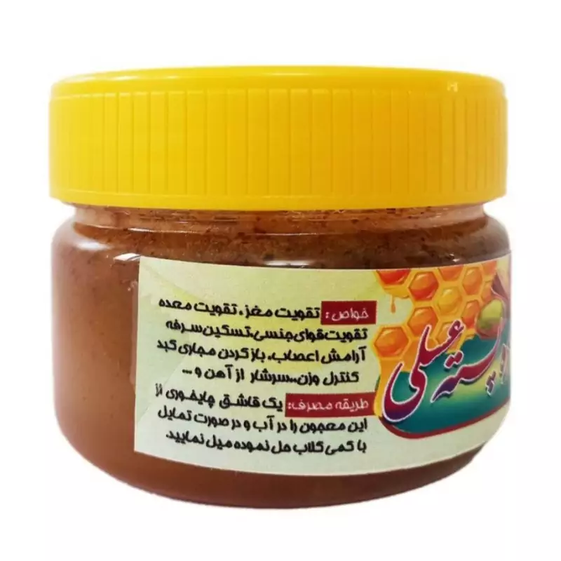 یک قاشق چایخوری از این معجون را در آب و درصورت تمایل با کمی گلاب حل نموده میل نمایید.