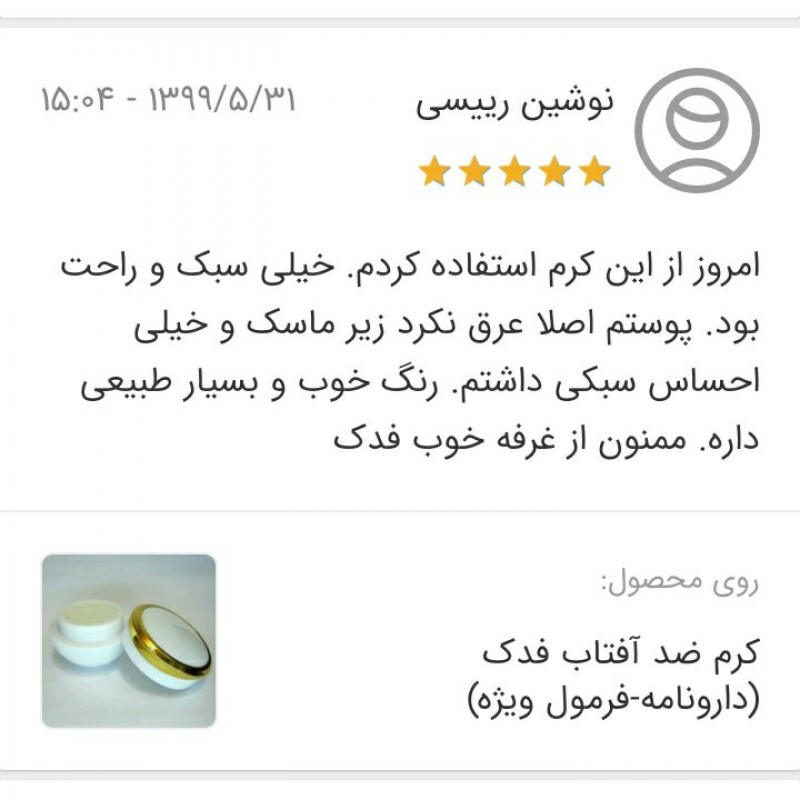 کرم ضدآفتاب تیوپی 5ستاره فدک (دارونامه-فرمول ویژه)