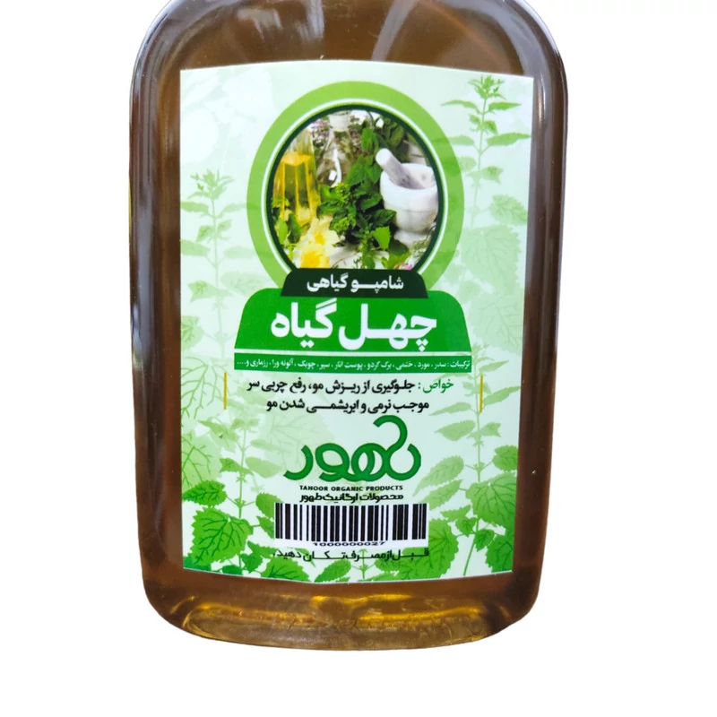 سایر توضیحات: شامپو چهل گیاه طهور بدون هیچگونه مواد شیمیایی و نگهدارنده تولید شده است.