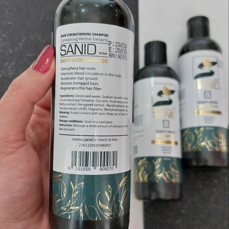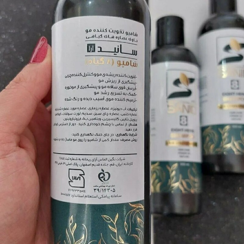 مژده مژده 😍 محصول جدید سانیدآرا 🔥شامپو 8 گیاه سانید آرا🔥 1⃣تقویت کننده ریشه مو 2⃣بهبود دهنده گردش خون در ناحیه پوست سر 3⃣کمک به تسریع رشد مو 4⃣ضد ریزش قوی 5⃣بازسازی فیبر مو ◀️حاوی عصاره غلیظ گیاهانی همچون : 🌼مورد،سدر ،شنبلیله،سبوس برنج ، ختمی،عصاره بابونه ، عصاره چای سبز ✅مناسب موی چرب و معمولی ✳️دارای مجوز سازمان غذا ودارو ، سیب سلامت ، کد ایران کالا ،و پروانه بهداشتی ساخت و .... قابل فروش در فروشگاه ها ، عطاری ها و داروخانه و .... ✅فرمول بندی دقیق با جهت گیری علمی با استفاده از مبانی طب سنتی ✅استفاده از علم و فن آوری روز دنیا در تولید شامپو سانید آرا ✅استخراج ماده موثره از عصاره گیاهان بر اساس کتب طب سنتی ✅استفاده از کمترین میزان از مواد پایه شیمیایی در تولید شامپو