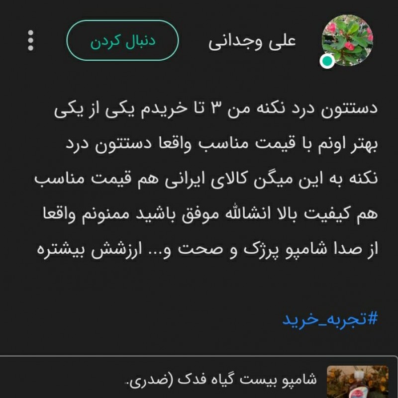 شامپو بیست گیاه فدک (ضدریزش و شوره)
