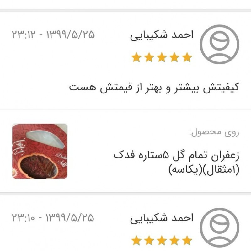 زعفران تمام گل 5ستاره فدک یک مثقال (تخفیف ویژه آخر ماه)