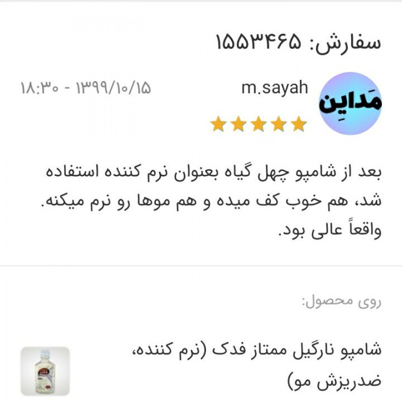 شامپو نارگیل ممتاز فدک (نرم کننده، ضدریزش مو)