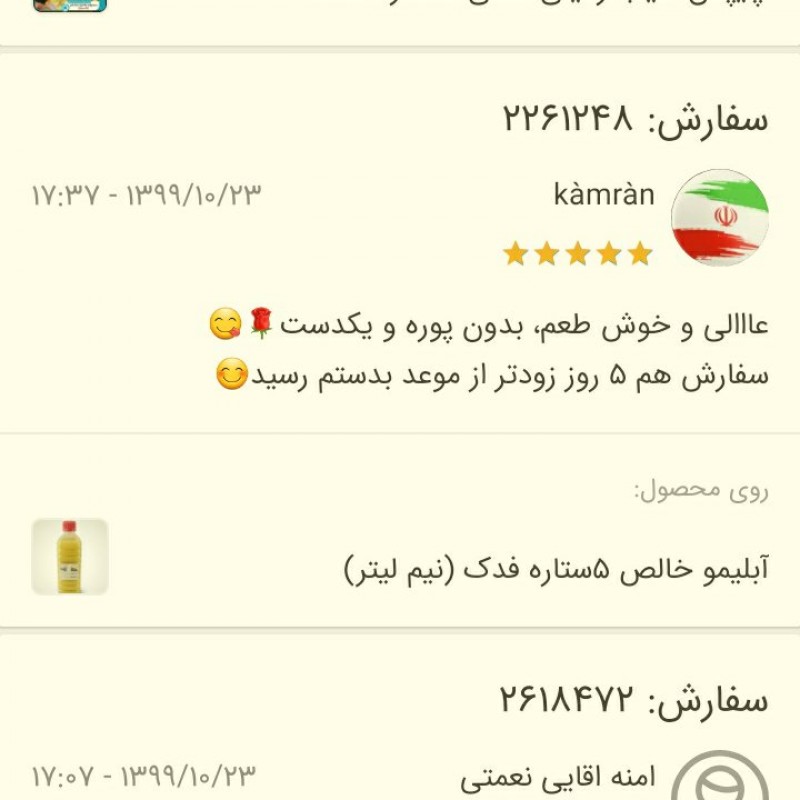 آبلیمو خالص 5ستاره فدک (نیم لیتر)
